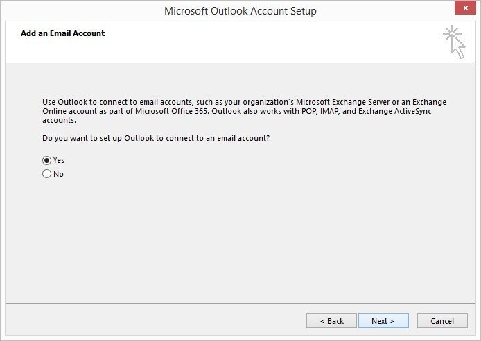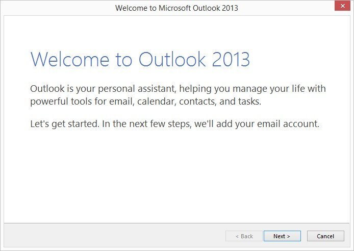 Open a fresh installation of Microsoft Outlook 2013 or a new Profile.