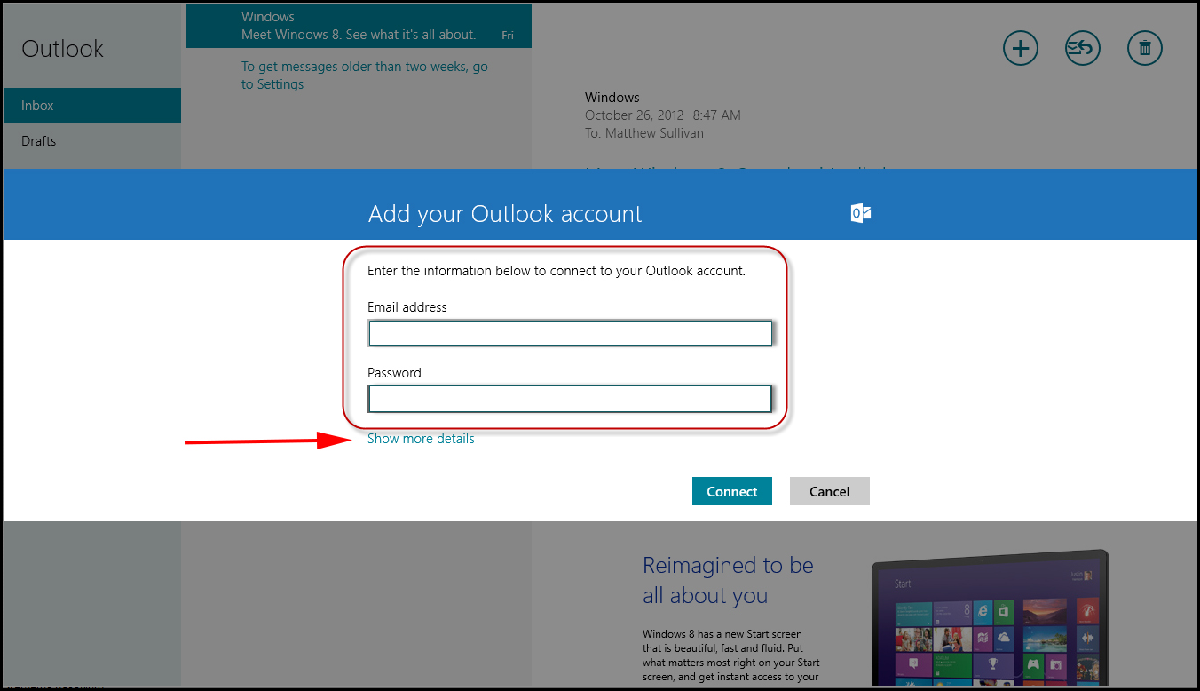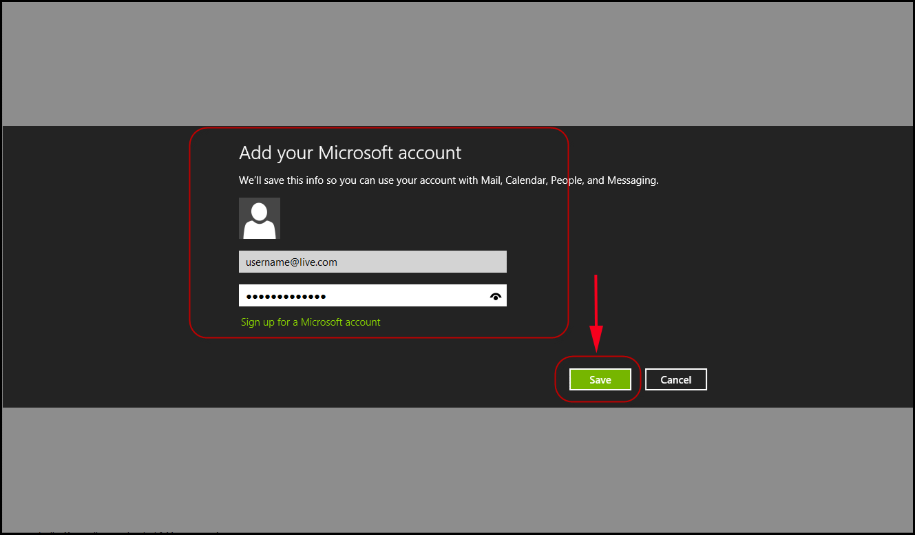 Add your Microsoft email address (Not Exchange), enter password, and click ‘Save.’